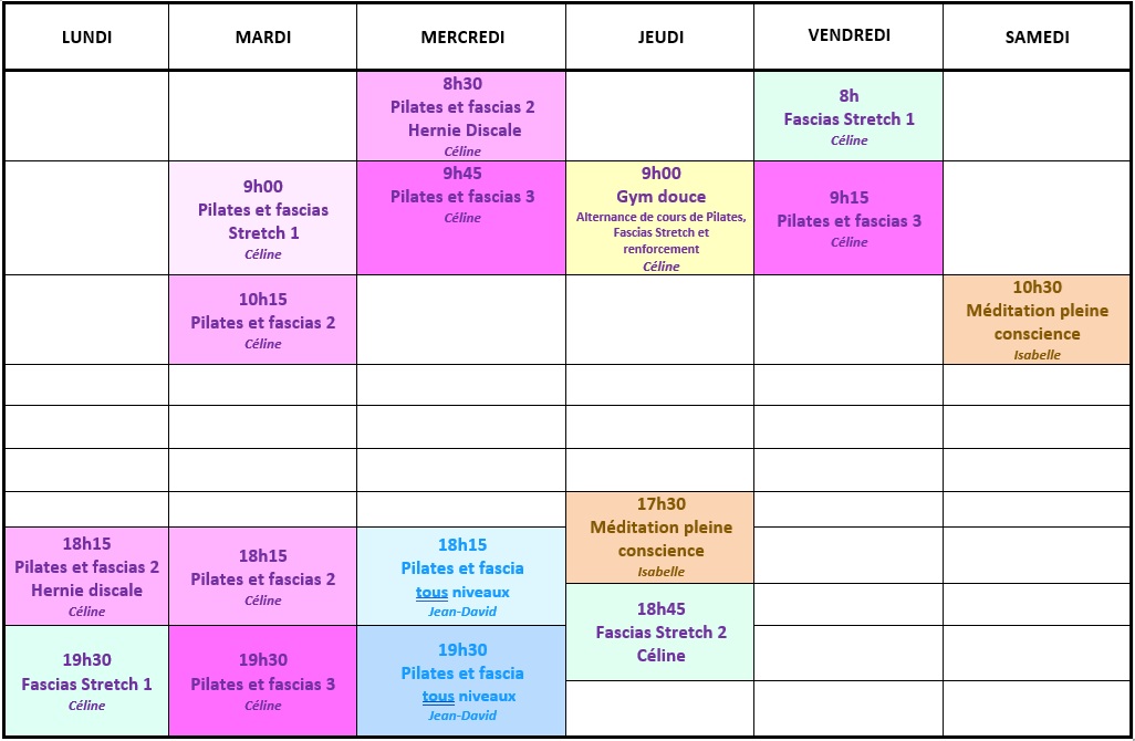 Vous trouverez le planning de nos cours en bas de cette page
